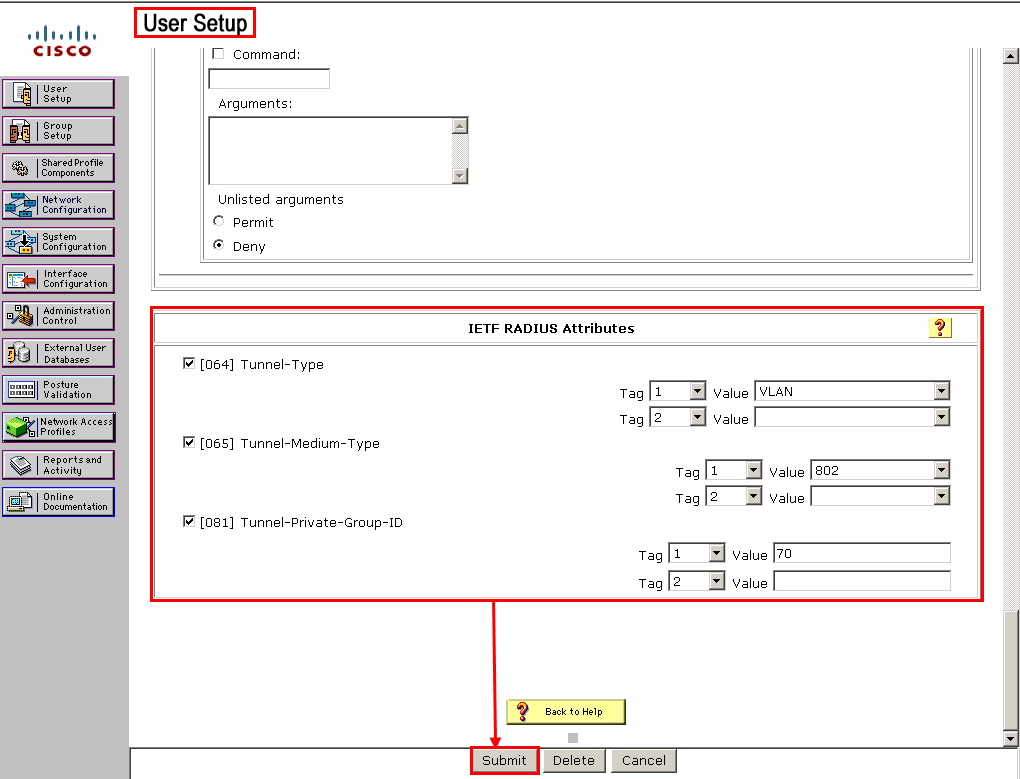 - 81번 Tunnel-Private-Group-ID는 VLAN 70번으로 변경할 것이기 때문에 70으로 설정한다.