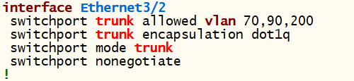 - 상위 포트는 Trunk로 설정하고 Vlan 70, 90번이 통과될 수 있도록 한다.