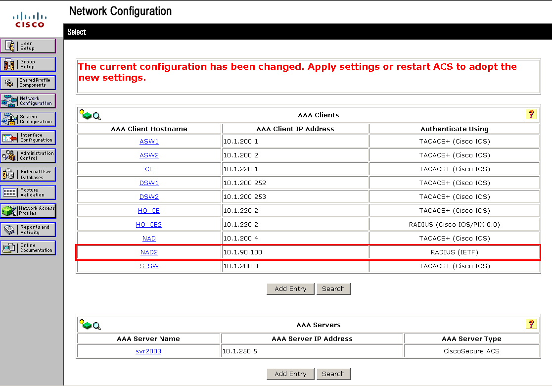 1. ACS서버에서 NAD AAA Client를 생성