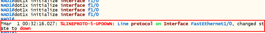 2. NAD에서 dot1x initialize int fa 1/x 명령어를 입력한다.