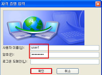 - 연결을 시도하면 자격 증명 입력 창에 ACS 서버에 등록된 사용자 아이디와 패스워드를 입력한다.