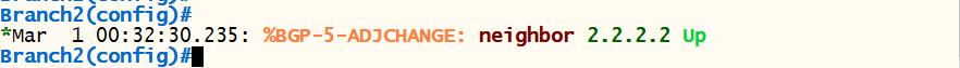 <Branch2> conf t router bgp 20 neighbor 2.2.2.2 remote-as 20 neighbor 2.2.2.2 update-source loopback 0 exit |