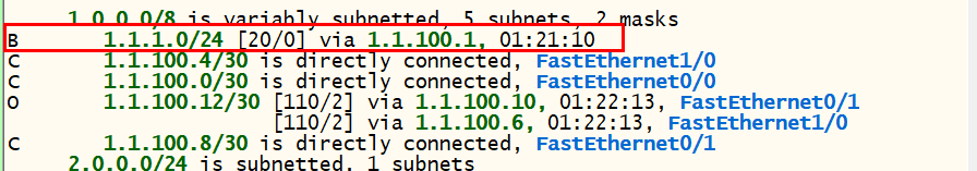 - 기존에 없던 1.1.1.0 네트워크가 Best Path로 설정되었다.