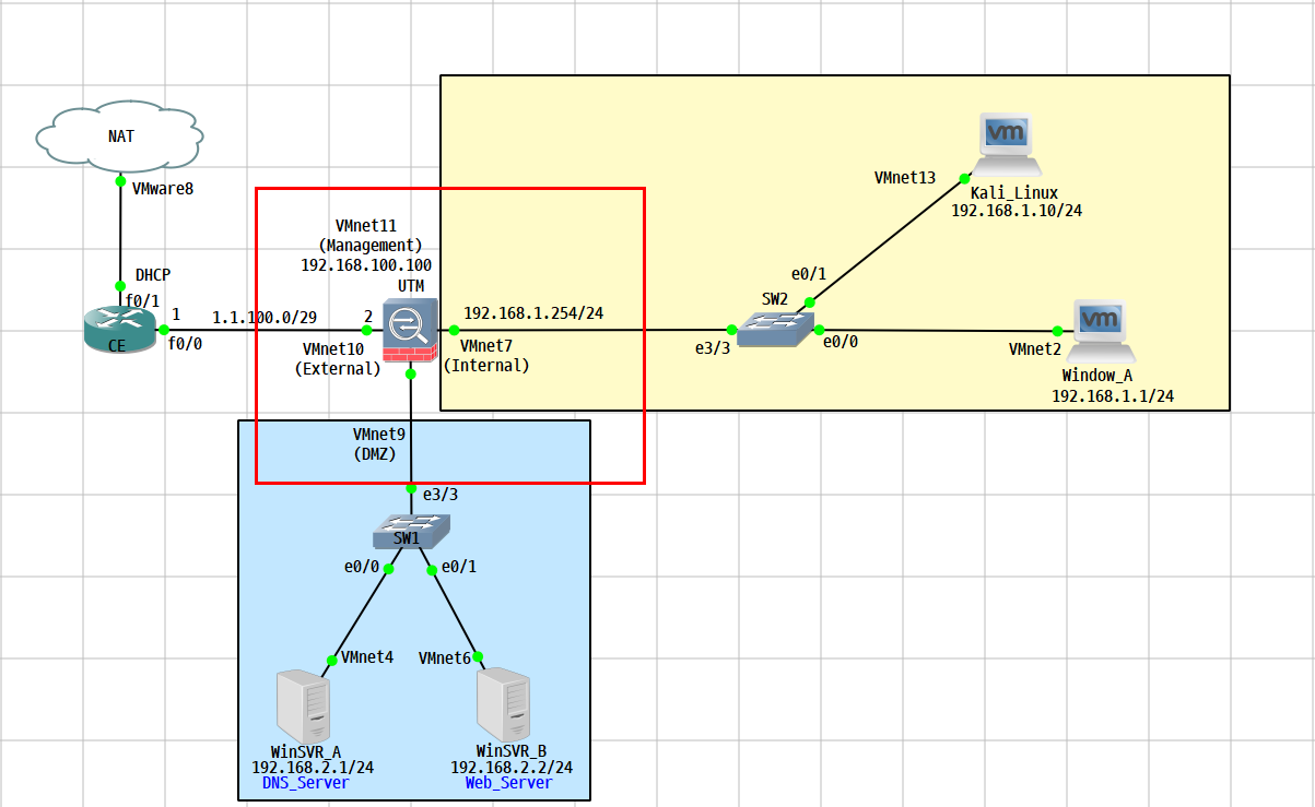 - 해당 Network에서 UTM을 설치하려고 한다.