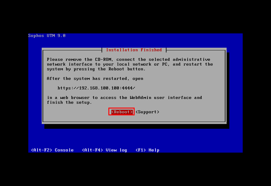 - 모든 설정이 완료되면 관리자 IP 번호가 맞는지 확인한 이후에 Reboot 항목을 선택한다.