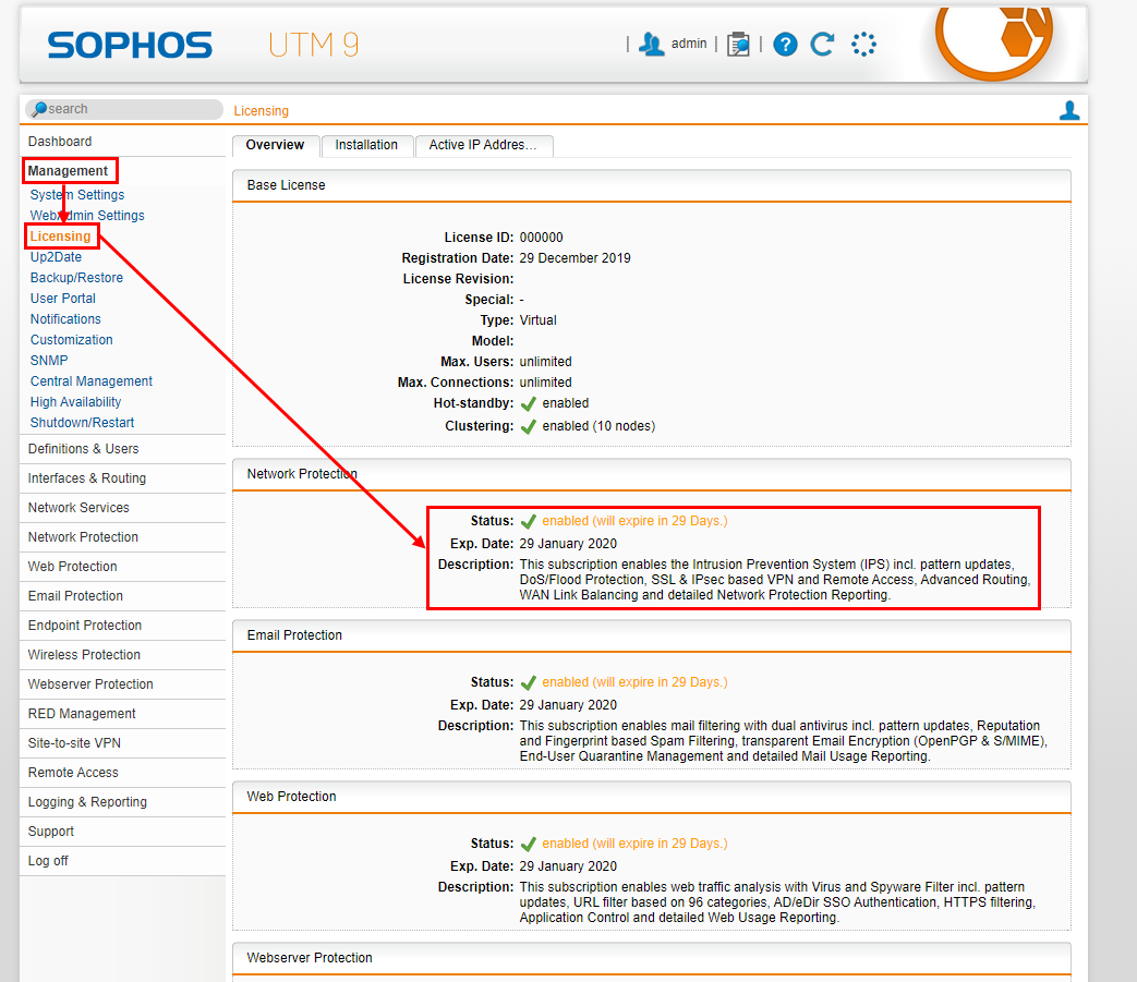 - Management → Licensing을 가보면 라이센스가 없기 때문에 1달간 무료로 사용이 가능하다.
