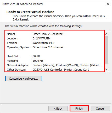 - 해당 사항이 맞는지 확인한 이후에 이상이 없다면 Finish 버튼을 클릭한다.