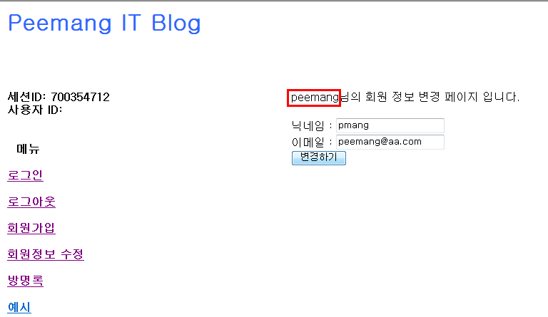 select * from member where user_id='peemang'