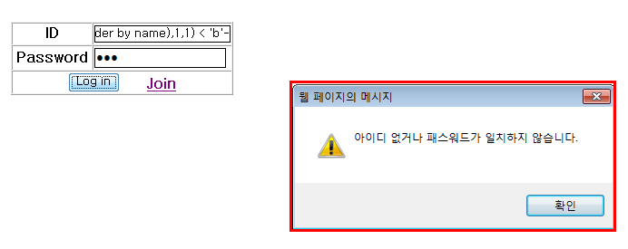 - SQL Injection을 통해 참과 거짓을 구분할 수 있는지 확인한다.