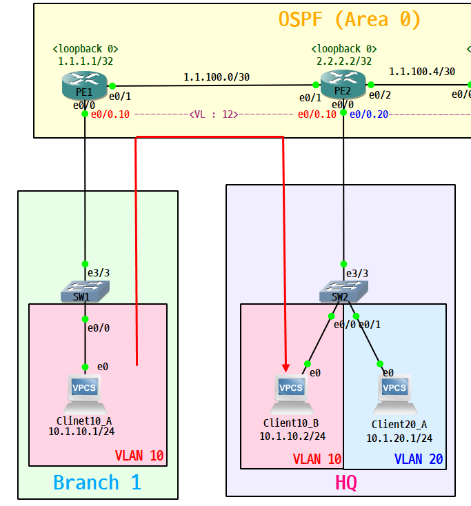 - PE1, PE2 간 VC번호 12번으로 통신하는것을 확인할 수 있다.