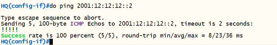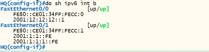 ipv6 add 2001:12:12:12::2/64
