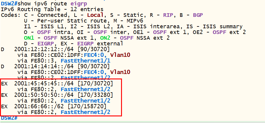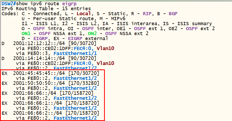 4.1.2) show ipv6 route eigrp