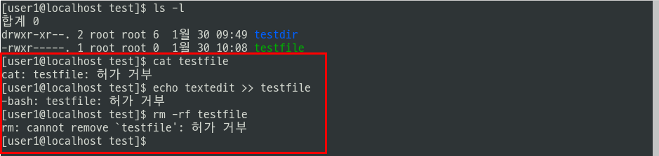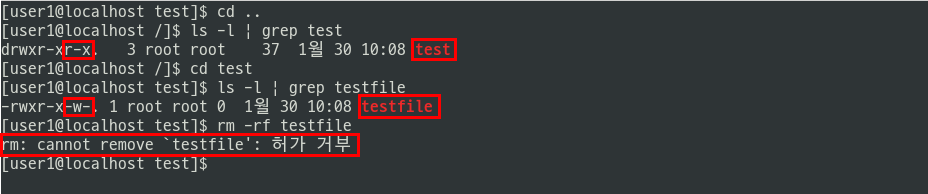- 파일 삭제, 생성, 이동 등에 대한 권한을 파일이 아니라 상위 디렉터리 자체에 쓰기(w) 권한이 부여되어 있어야 한다.