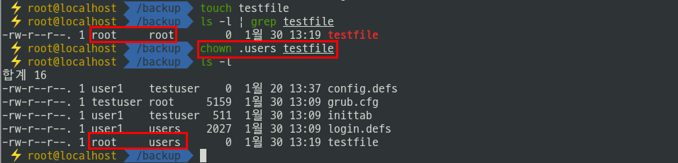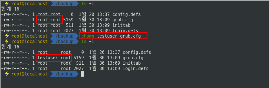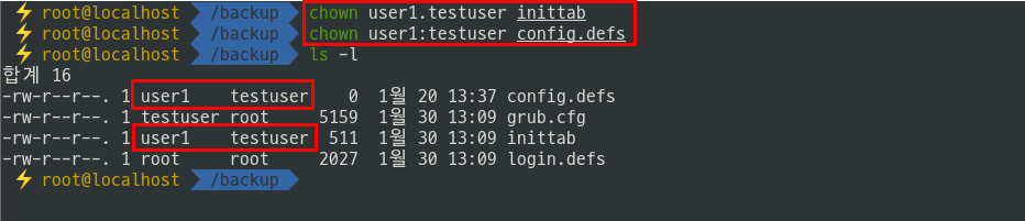 1.2) 소유자와 소유 그룹을 동시에 변경