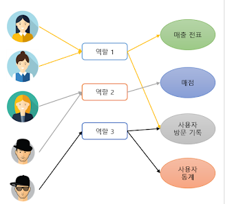권한을 사용자 개인이 아닌 역할 그룹에 부여하고, 사용자에게 역할을 할당하여 접근 제어를 하는 방식이다.