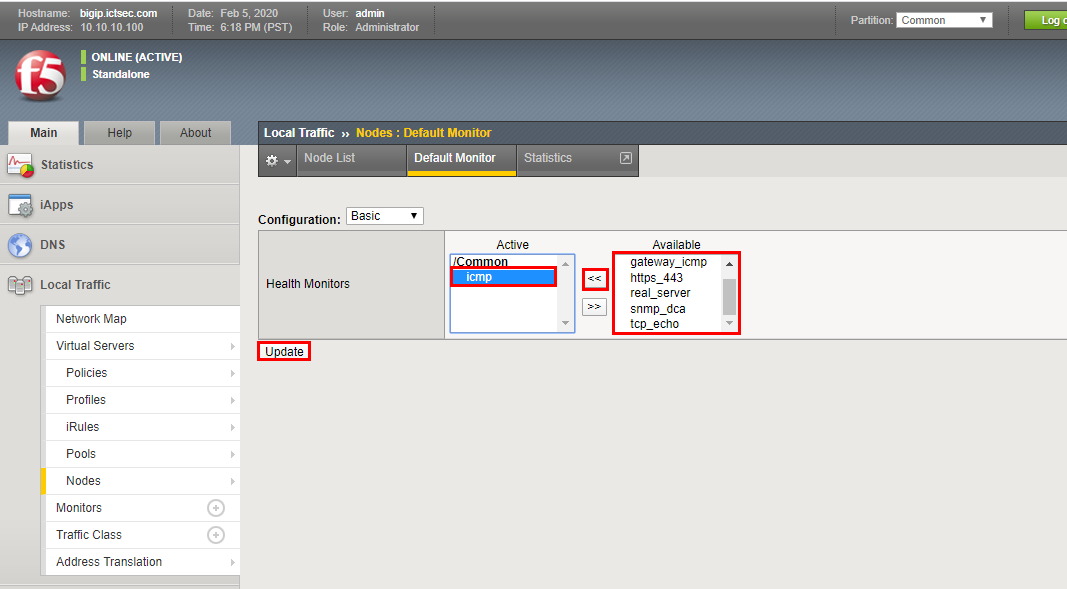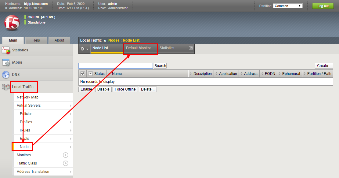 - Local Traffic → Nodes → Default Monitor를 클릭한다.