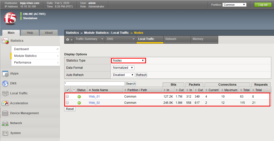 - 각 Node, Pool, Virtual Server가 Monitoring을 통해서 잘 동작하는지 확인할 수 있다.