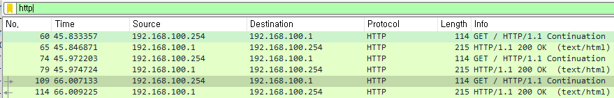 - HTTP 요청 응답 패킷을 20초마다 주고 받는것을 확인할 수 있다.