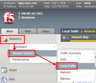 - 트래픽을 확인하기 위해서 Statistics → Module Statistics → Local Traffic을 클릭한다.