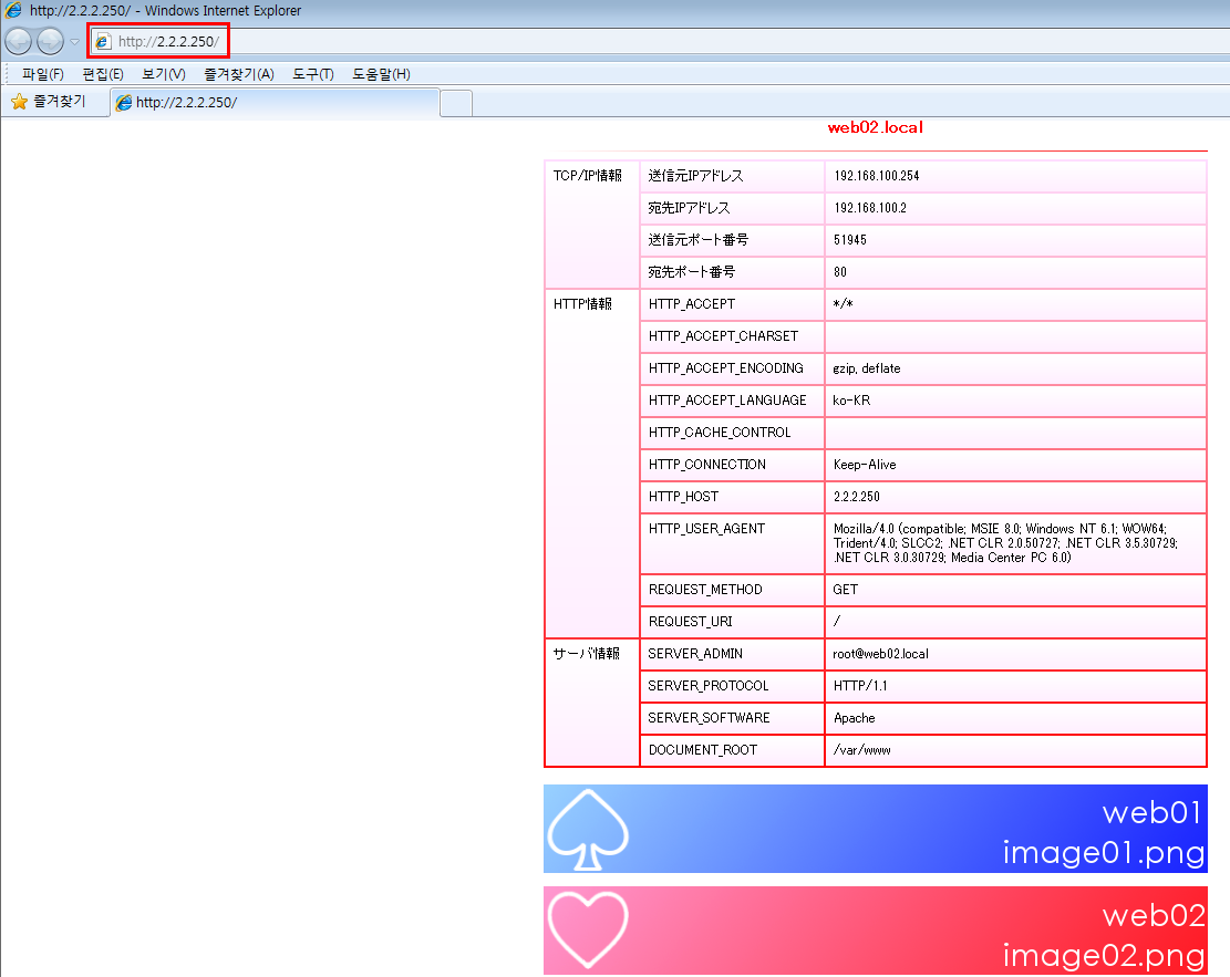 - Virtual Server IP주소로 접속하면 모든 정보를 Web02 서버로 부터 받아오는것을 확인할 수 있다.