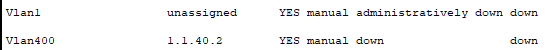 interface vlan 400 명령어를 입력하면 가상회선이므로 up up link가 바로 생성된다.