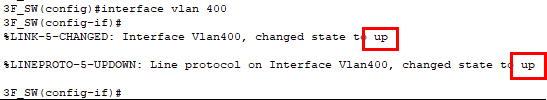3F_SW(config)#int fa 0/10 3F_SW(config-if)#switchport trunk allow vlan add 400 |