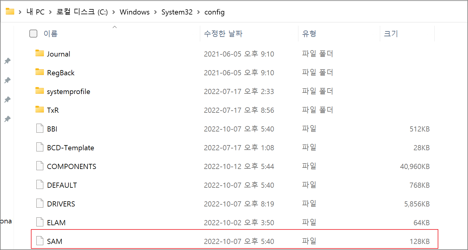 SAM 경로: %systemroot%/system32/config/sam