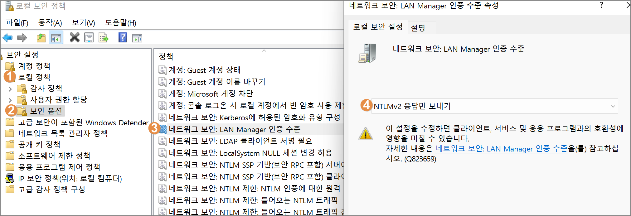 네트워크 로그인 인증을 이용할 때 안전한 NTLMv2를 사용한다.