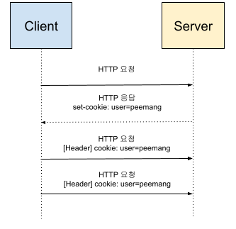 웹브라우저가 웹 서버에 요청할 경우 Cookie 헤더를 사용하고 서버는 응답에 Set-Cookie 헤더를 포함시키는 방식으로 쿠키를 설정한다.