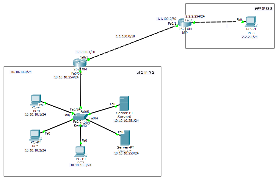 Ex) 다음 조건에 따라 Static NAT를 구성하시오.