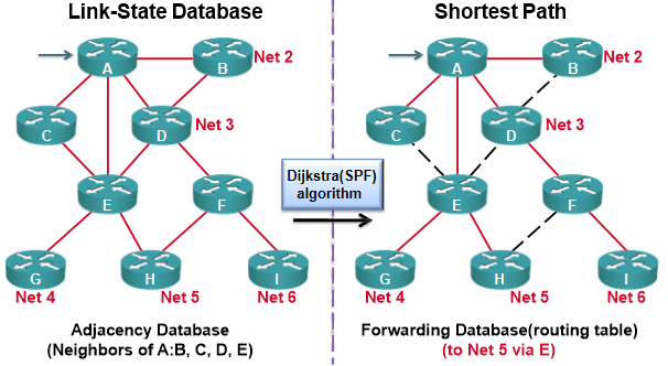 - Link-State Routing Protocol이 설정된 각 Router들은 LSDB(Link-State Database)를 갖고 있다.