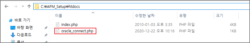 phpnet에서 테스트할 oci-connect.php파일을 가져온다.