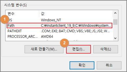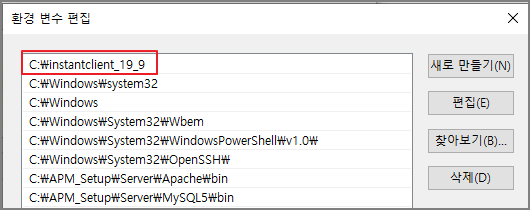 최상단에 있던 오라클 경로를 지우고 2.1에서 설치한 installclient 경로로 변경 후 저장한다.