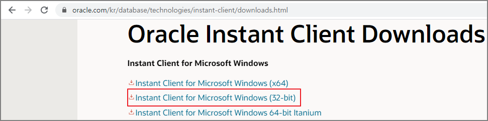www.oracle.com/kr/database/technologies/instant-client/downloads.html