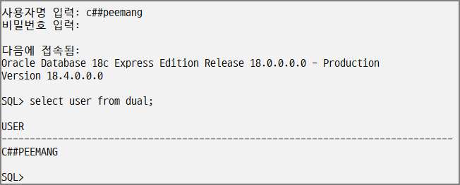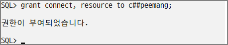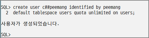C##peemang 계정이 정상적으로 생성된것을 확인할 수 있다.