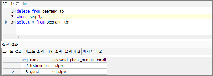 update 및 delete 를 사용할 때 where절을 이용하여 변경하고 싶은 데이터만 변경을 수행한다.