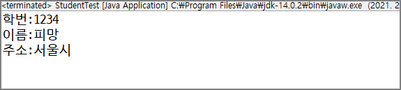 생성한 객체에 학번, 이름, 주소를 대입하였다.