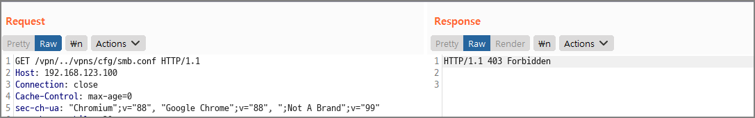 [Target IP]/vpn 경로에서 Directory Traversal 를 이용하여 상위 경로로 이동 후 /vpns 아래의 파일 이름으로 경로를 변경하여 응답 값이 200으로 출력될 경우 취약한 장비 인것을 확인할 수 있다.