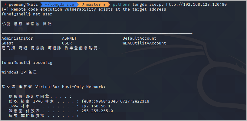 # print("[+] Remote code execution vulnerability exists at the target address")