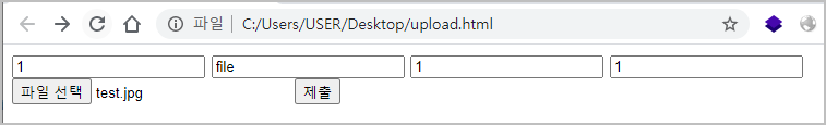 html 파일을 실행 시킨 후 이전에 생성한 jpg 파일을 업로드 하여 해당 요청을 전송한다.