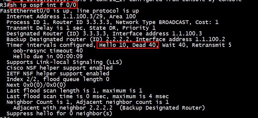 show ip ospf int fa 0/x: 해당 경로 ospf 정보 확인