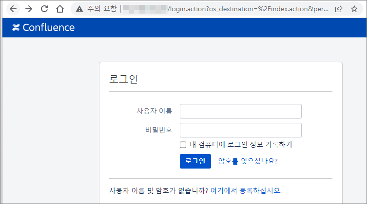 /login.action 경로로 이동하여 해당 사이트가 Atlassian Atlassian 또는 Atlassian Confluence를 사용중인지 확인합니다.