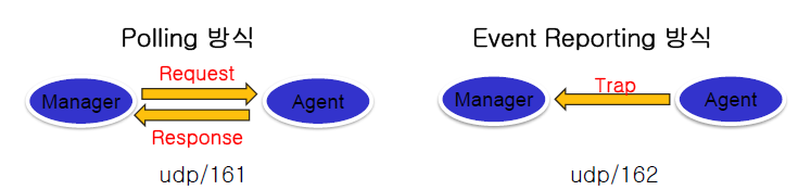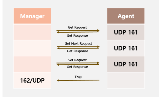 Trap: Agent가 NMS에게 비동기적으로 알리기 위해 사용, 콜백 함수와 같은 역할 수행 (162/UDP)