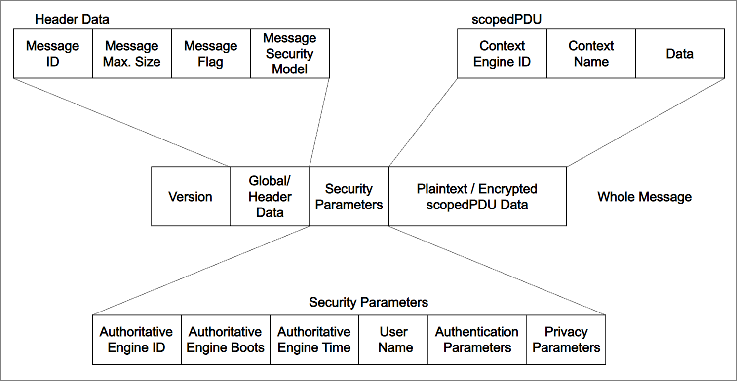 비인가 사용자에 대한 데이터의 변경(무결성) 도청(기밀성) 재사용 공격에 대응하는 기능을 제공하는 사용자 기반 모델(USM)과 인가된 사용자의 MIB 접근 통제 기능을 제공하는 뷰기반 접근통제 모델(VACM)에 의해 제공된다.