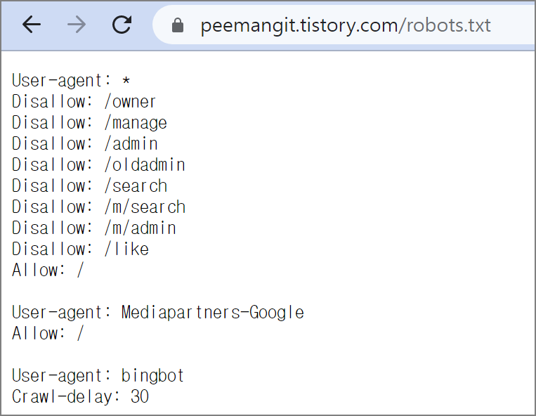 접근제한에 대한 설정을 robots.txt 파일에 기술한다.