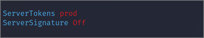 ServerTokens 지시자에 Prod 설정을 하여 웹서버, OS 모듈 정보만 출력되도록 설정한다.