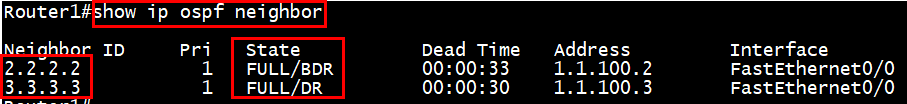 conf t router ospf 1 router-id 2.2.2.2 net 2.2.2.2 0.0.0.0 area 0 net 1.1.100.2 0.0.0.0 area 0 net 1.1.100.10 0.0.0.0 area 1 ! |