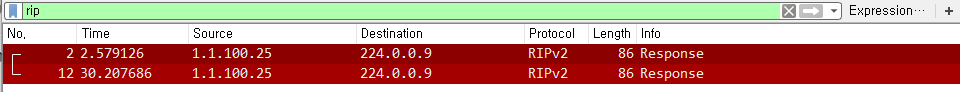 - 하지만 패킷분석을 해보면 R4 Router로 RIP 패킷이 가는것을 확인 할 수 있다.