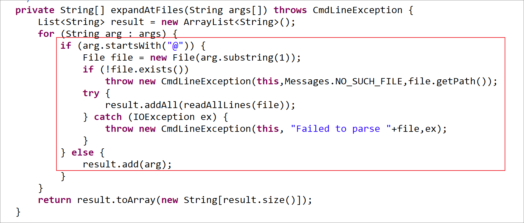 arags4j 라이브러리에서 매개 변수 @문자 뒤에 파일 경로를 입력하면 해당 파일을 읽고 결과 값을 반환한다.