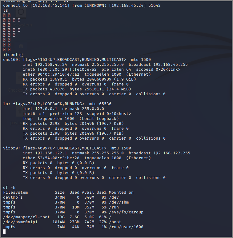 피해자: Locky Linux (IP: 192.168.45.24)